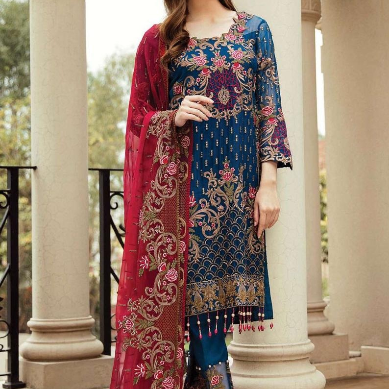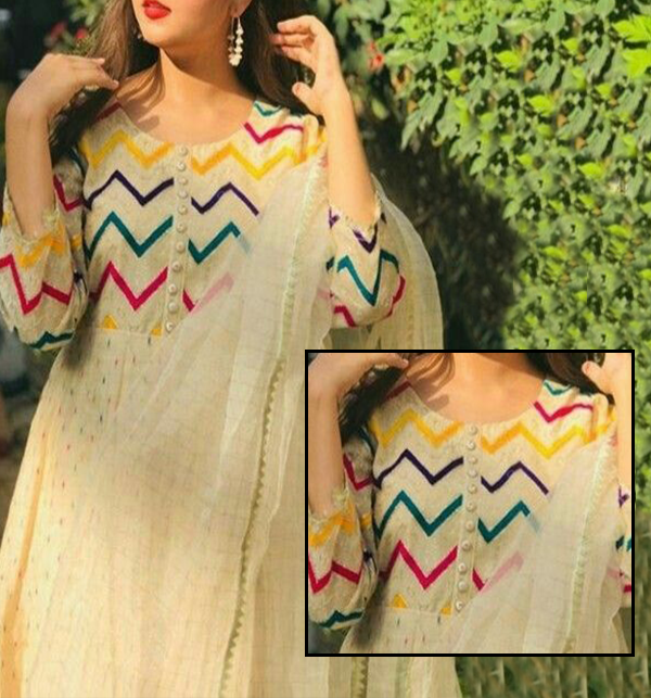 Cotton Jequard heavy embroidery dress with organza dupatta Masoori trouser price: 5000